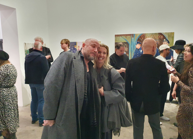 In dem Gemälde „oder flirten auf der Betriebsfeier“ von Christoph Bartolmäs wird das angedeutet. Man trinkt und ist im Zwiegespräch vertieft, ein Mann scheint ein wenig unentschlossen zu sinnieren. Der Titel deutet die Art seiner Gedanken an, vielleicht könnte er es dem Kollegen links von ihm gleichtun und eine Kollegin bei einem intimen Gespräch näher kennenlernen.